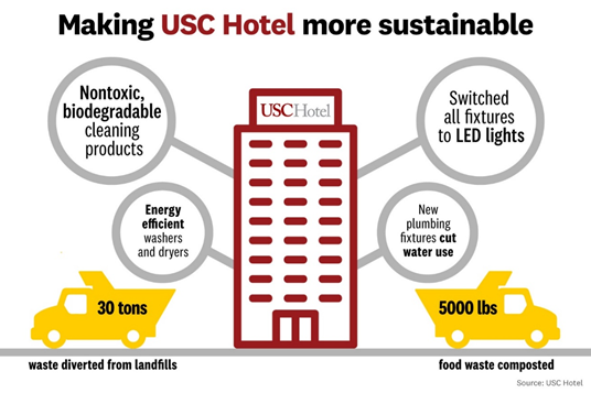 USC Hotel is the first university-owned lodging property in California to achieve high-level sustainability certification from an independent, national environmental organization